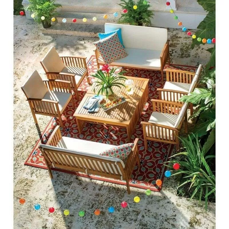 Solid Wood 8 - Person Seating Group with Cushions