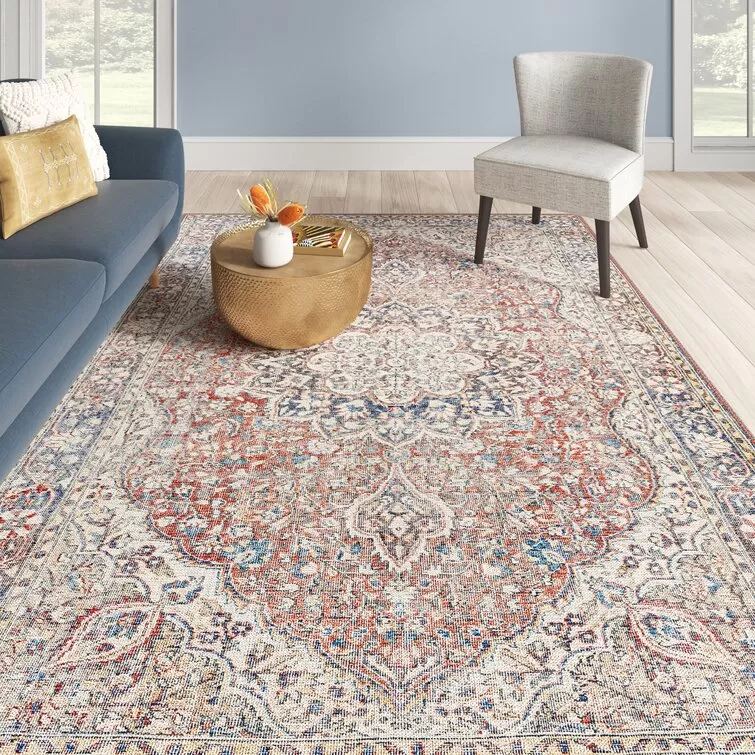 Bria Machine Washable Oriental Red/Blue/Ivory Area Rug