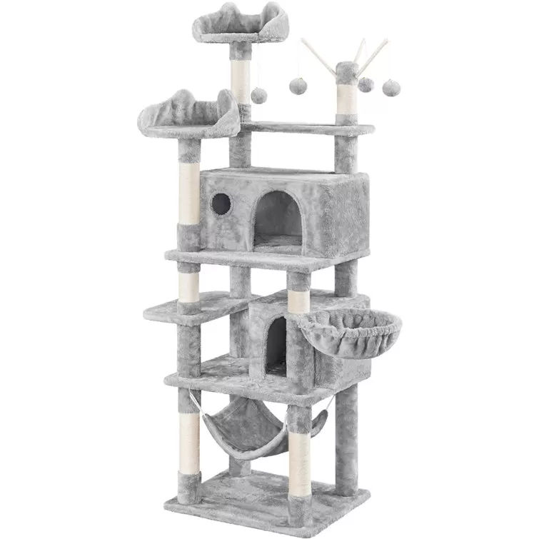 67" H Multi-Level Cat Tree Tower with 2 Cat Condos & Hammock Basket